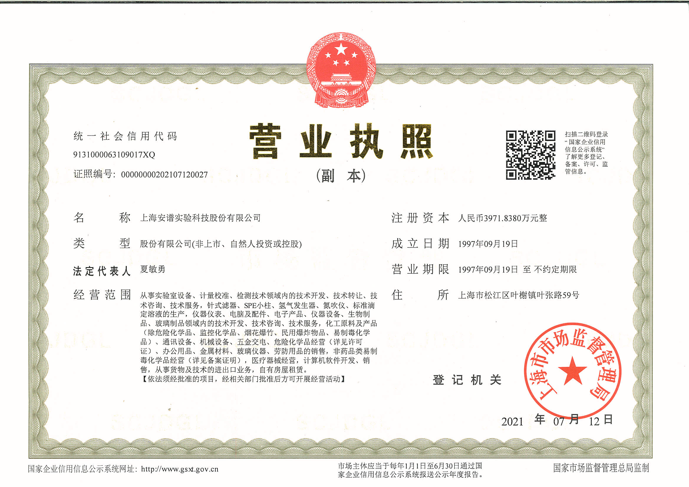 上海安谱实验科技股份有限公司( 证券代码:832021),成立于1997年,位于松江叶榭镇,28年来深耕研发、生产、销售与服务为一体的高新技术企业,拥有CNW、ANPEL、anpel-trace、GO TRACE自主产品品牌和才恩弗CNAS计量校准服务品牌,处于中国实验室消耗品行业的前列。在社会和民众关注的制药、食品、环境、化工等行业为政府(上海海关)、第三方(SGS、华测检测)、高校(清华、复旦)、大企业(伊利、药明康德)等实验室,提供超100万种耗材产品、1亿货值供应的实验室耗材一站式服务。截至2025年底,企业共有专利申请177件,授权专利74件,其中发明专利57件,公司有效注册商标165件。